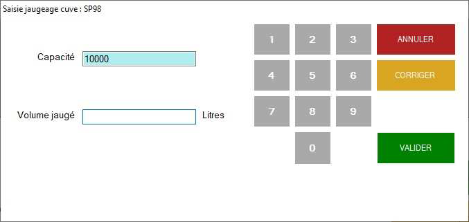 Saisissez le volume jaugé et validez