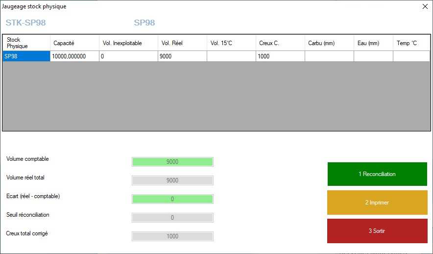 Les volumes s'ajustent, vous pouvez cliquer sur imprimer pour avoir une trace de la réconciliation.