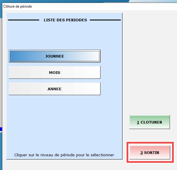 Pour fermer la caisse, se référer à la procédure ci-dessous :